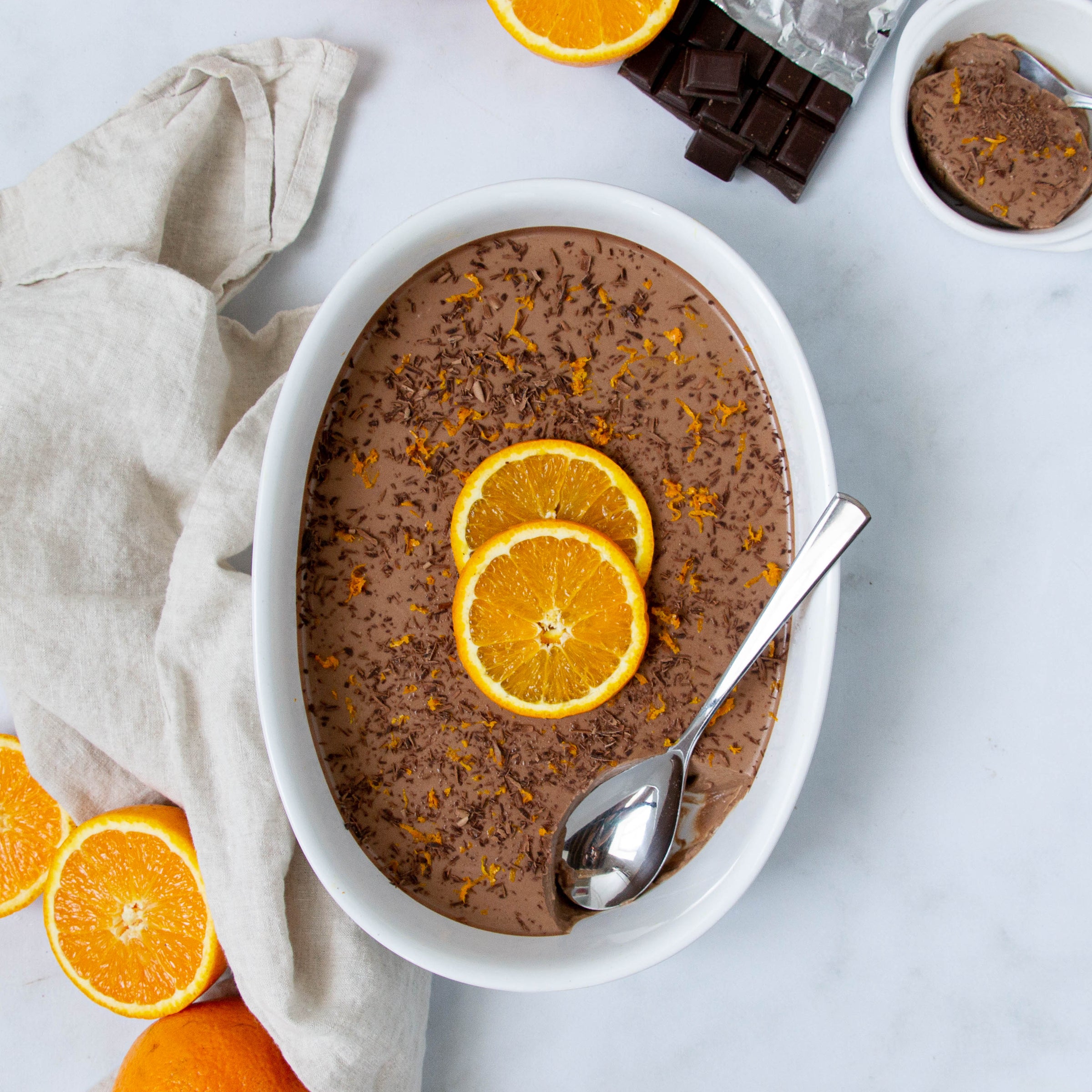 Chocolat noir 50%*, orange, crème liquide*, gélatine bovine*, sucre, copeaux de chocolat*.